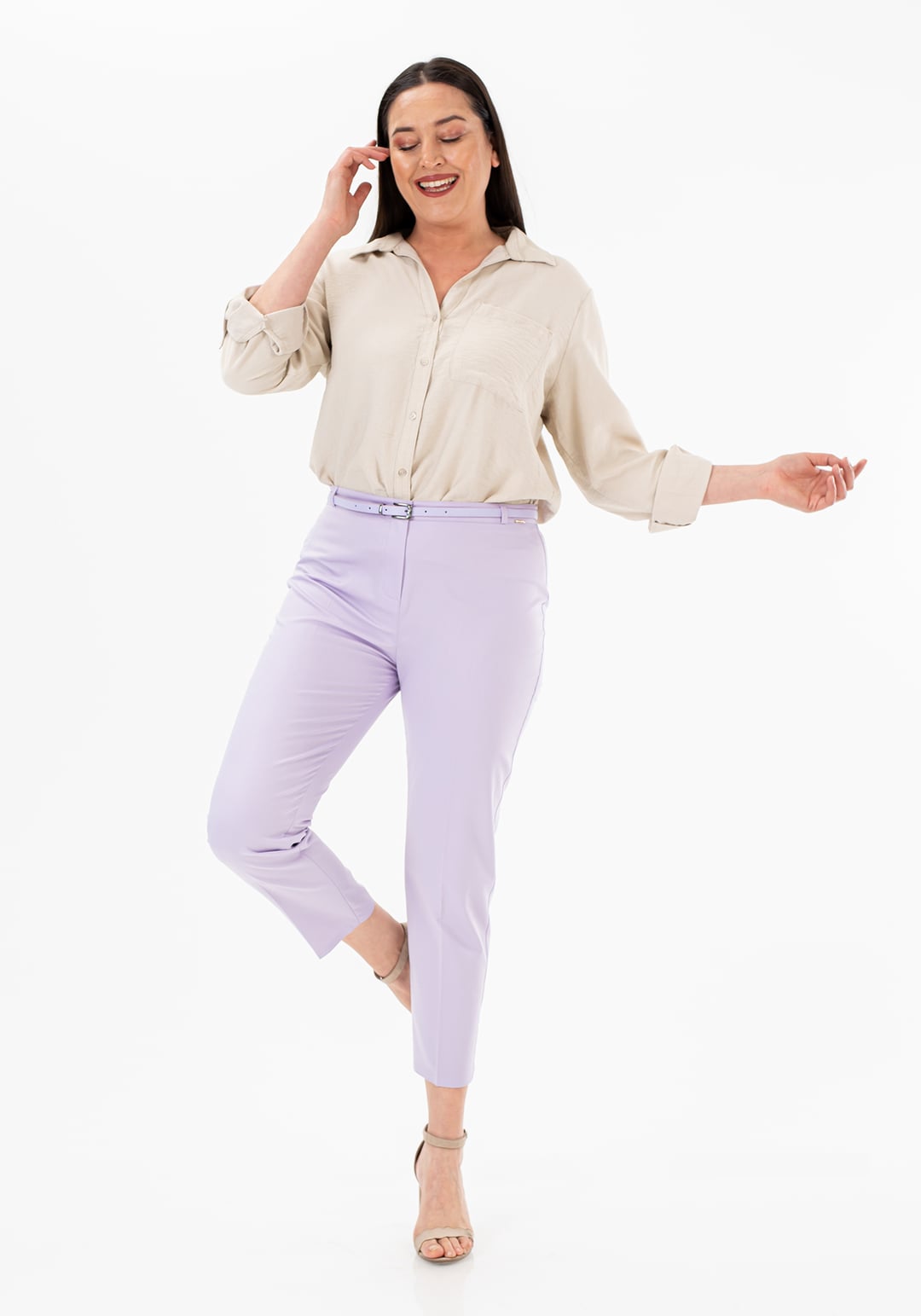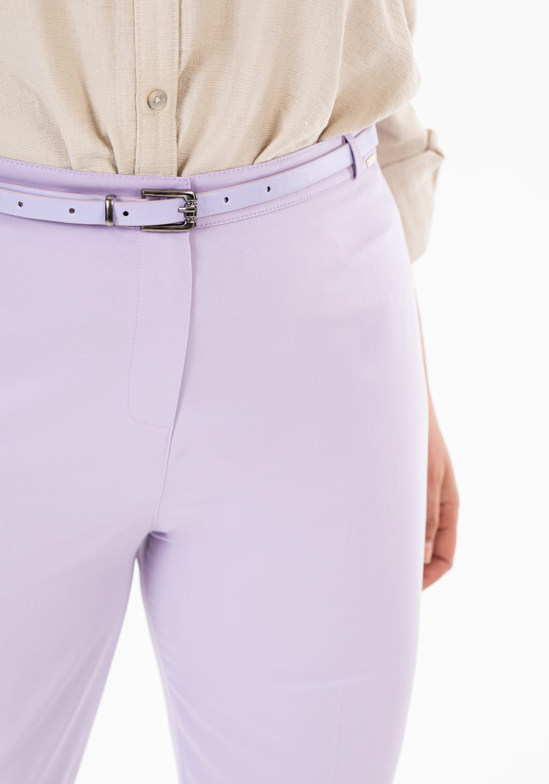 Buyuk Beden Kemerli Krop Kumaş Pantolon